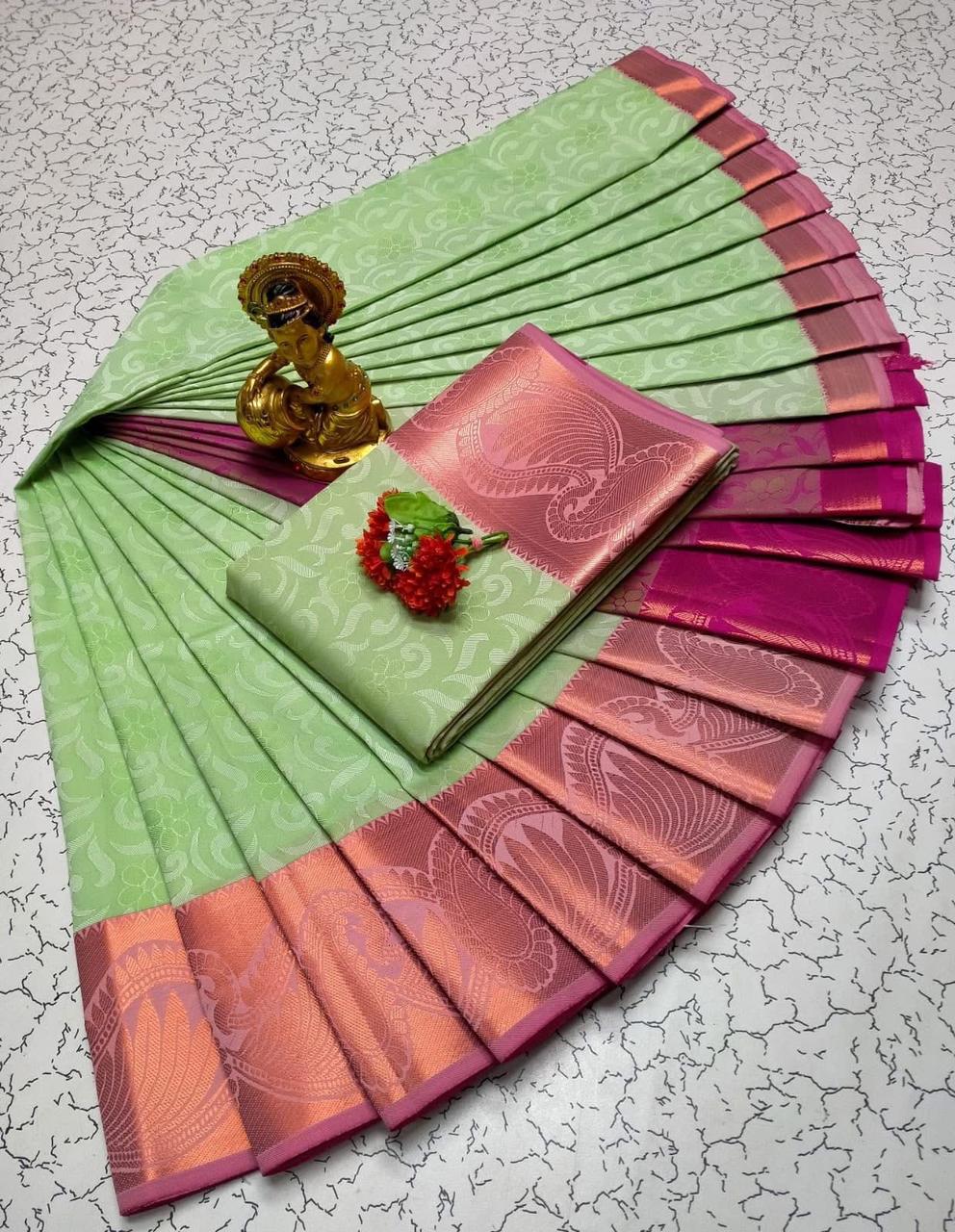 Pastel green with rose Soft Silk Saree We promise a curated ensemble that captures the...