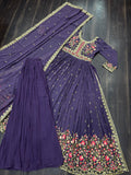 Premium Dark Lavender Sharara with Gerogette Fabric, Sequins & Foral Multi-Embroidered Dupatta