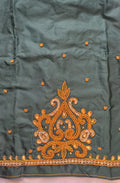 Soft Silk Saree with Aari Work Blouse - Chilli Red with Bottle Green